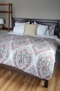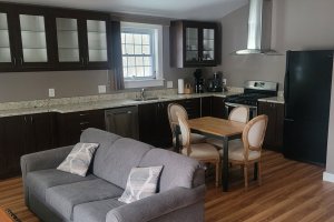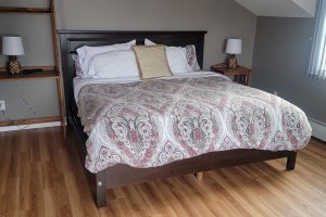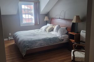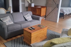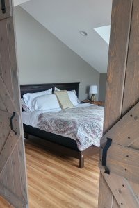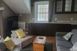 Izzy's Loft is located on the second floor of the Carriage House for extra privacy. This is a two-bedroom, one-bath apartment with a full kitchen and living room. The oversized deck overlooks the pavilion and huge lawn, with views of the Presidential Mountains, including Mt. Washington. Izzy's Loft can be joined with Heather's Loft if you'd like to make a multi-roomed suite for your group.