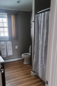 - Private bath with a shower over the bath